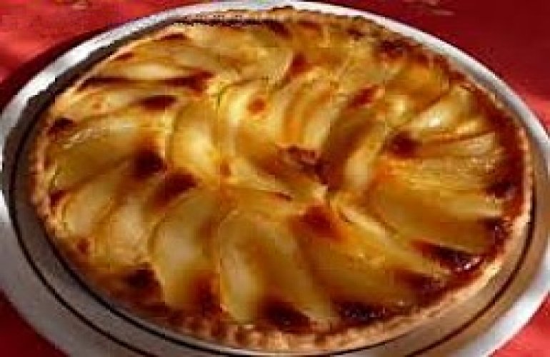 - Peler les poires et couper les en tranches épaisses. Disposer harmonieusement les tranches de poire sur le fond de tarte.